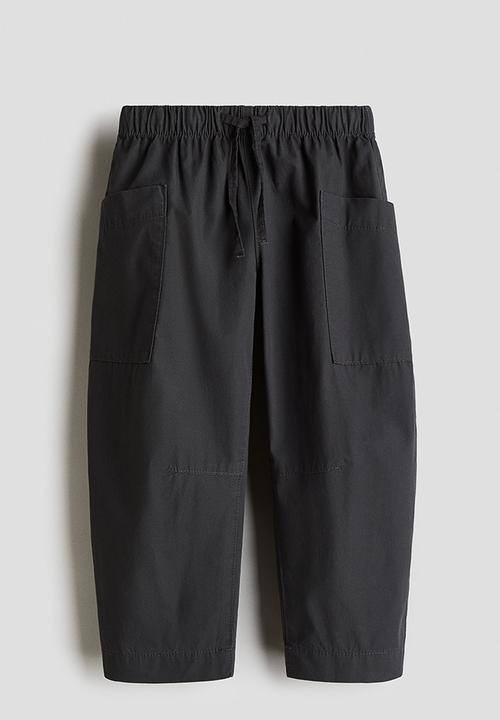 Wide waistband pants with slanted inset pockets – black gingham